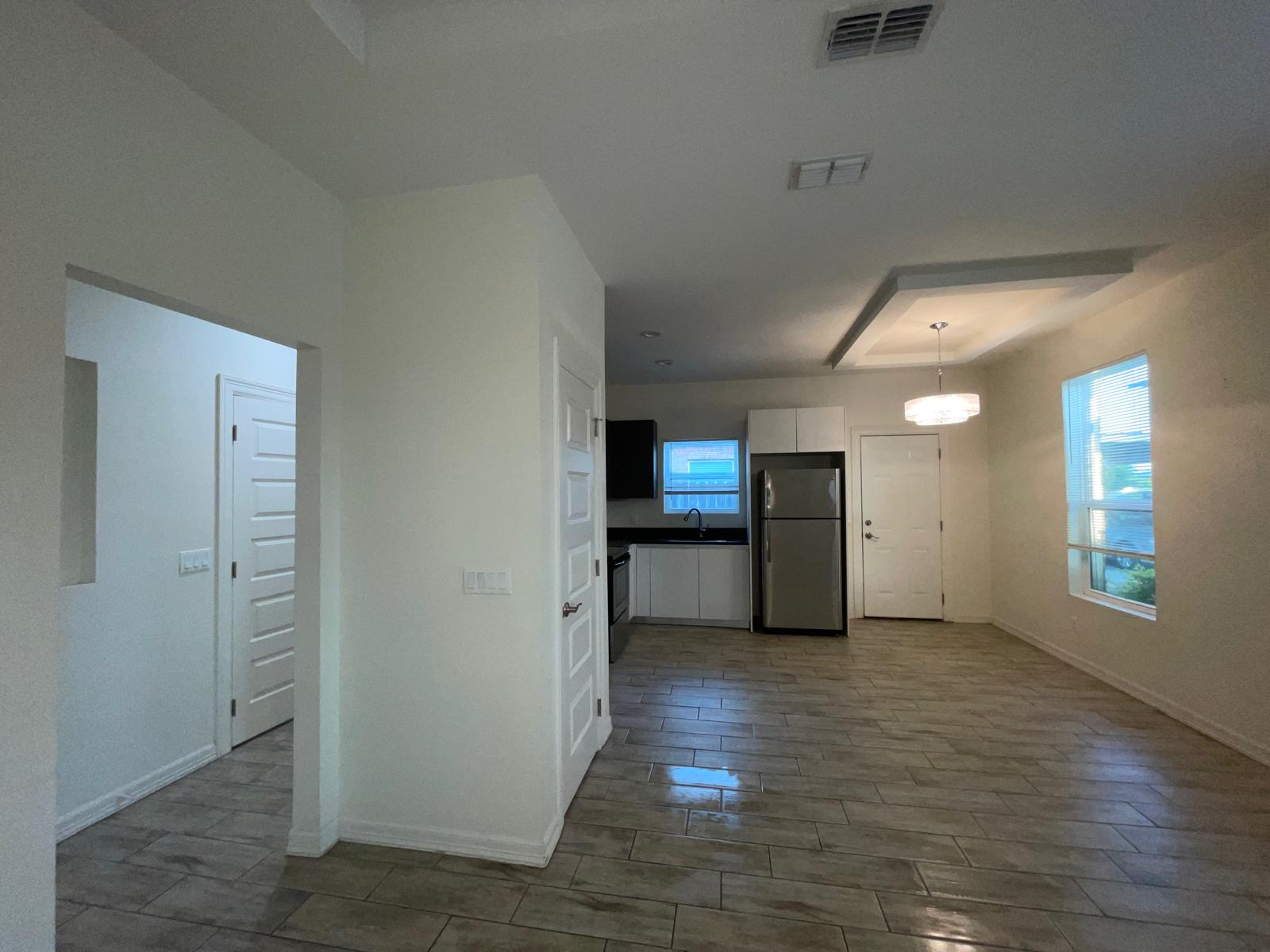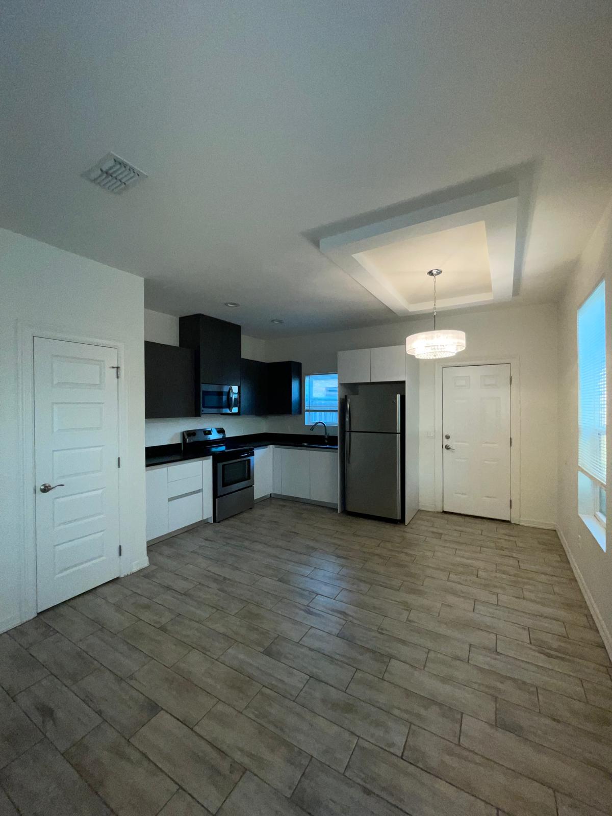 Great location, on north MonMack RD, passing Schunior and Chapin RD. NEW subdivision “MONMACK PLACE” on the left side on Valeria St. Nearby B. L. Garza Middle School, UTRGV, future TX. A&M Campus, Shopping Centers, Restaurants and quick access to 107. Beautiful high ceilings, 1 bedroom, 1 bath, with private backyard, washer and dryer, refrigerator, stove, microwave, assigned carport per unit.
